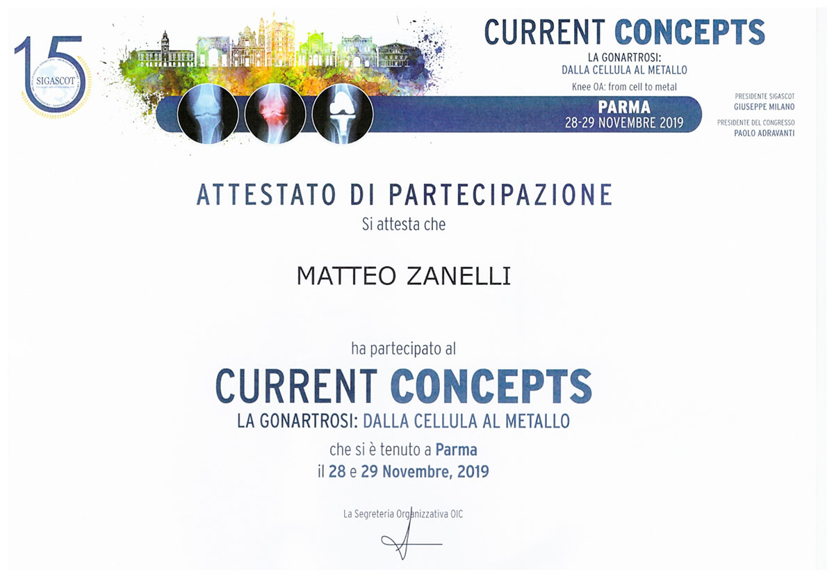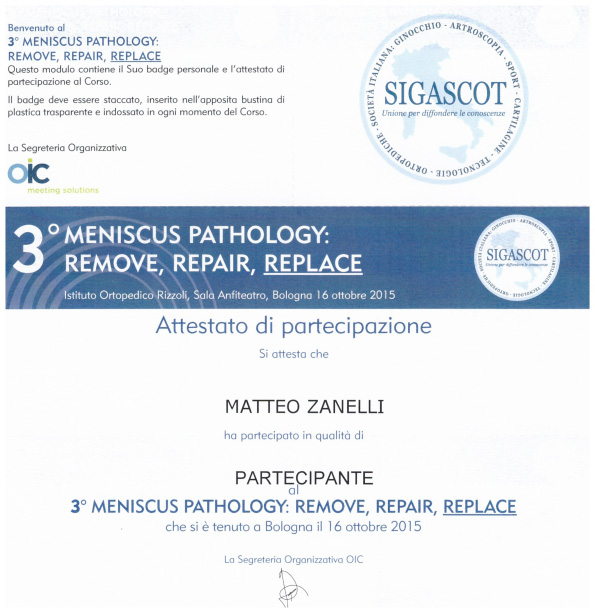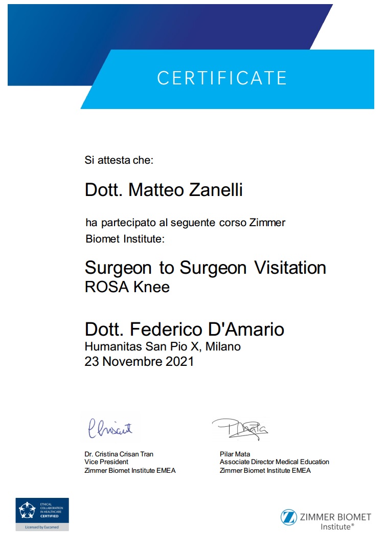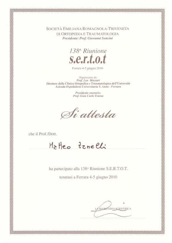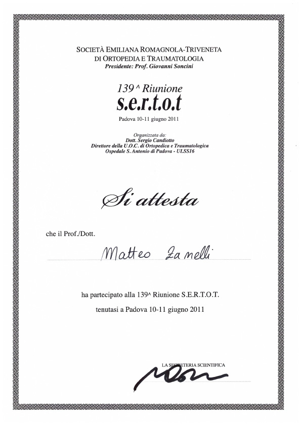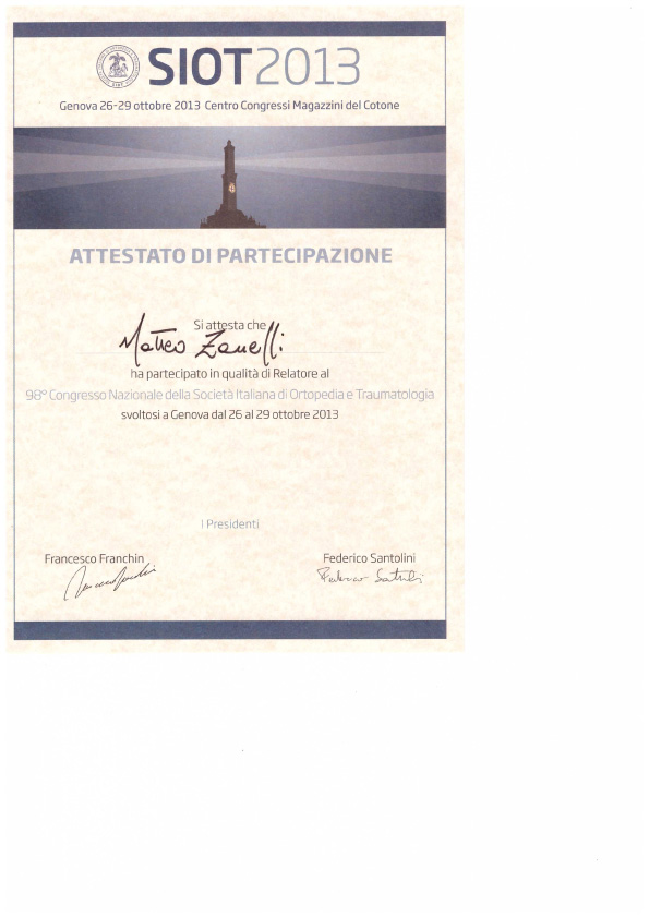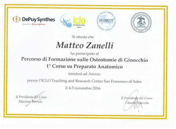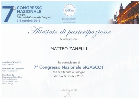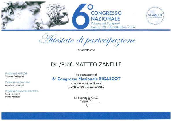 Sono socio SIOT (Società Italiana di Ortopedia e Traumatologia) e SIGASCOT (Società Italiana Ginocchio Artroscopia Sport Cartilagine Tecnologia ortopedica).