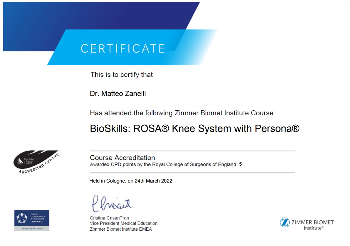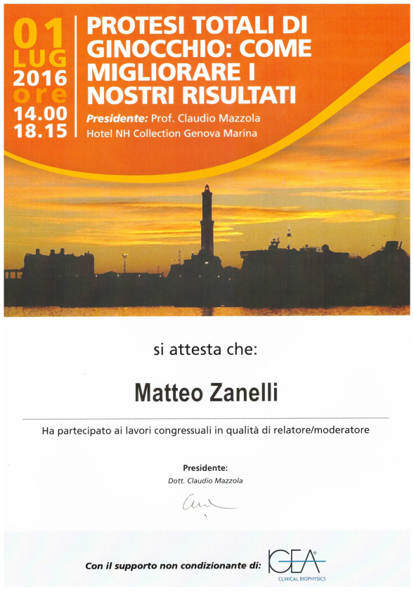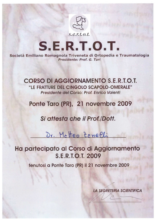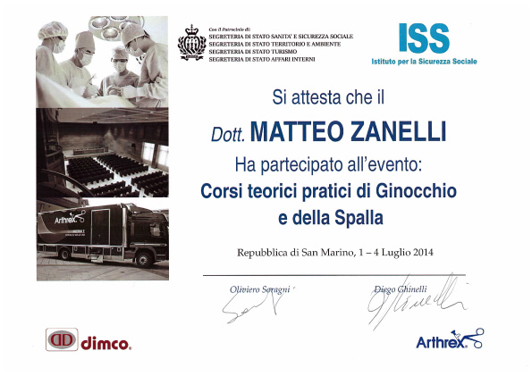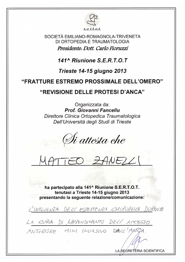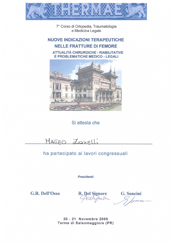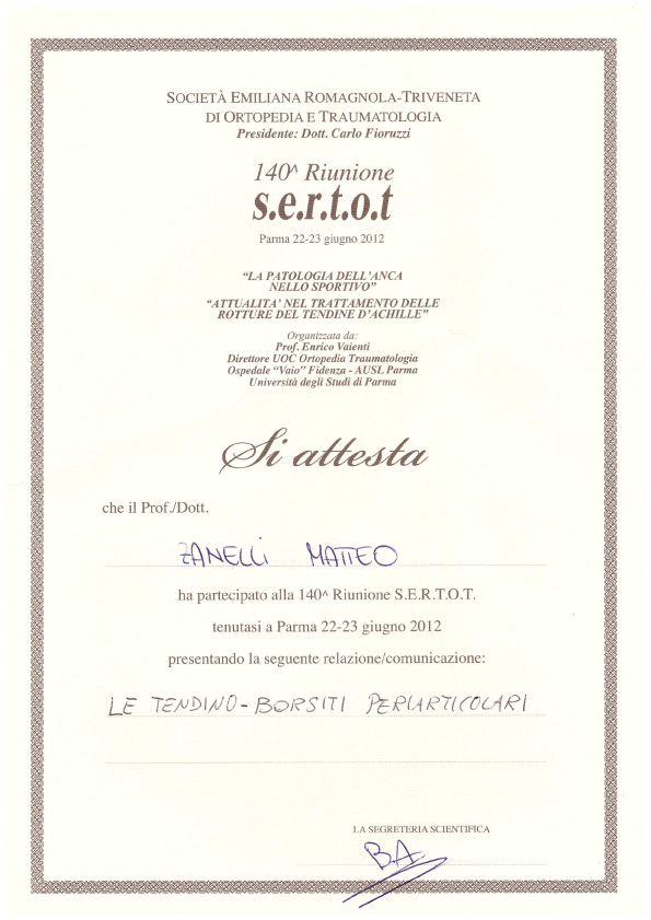 Sono socio SIOT (Società Italiana di Ortopedia e Traumatologia) e SIGASCOT (Società Italiana Ginocchio Artroscopia Sport Cartilagine Tecnologia ortopedica).