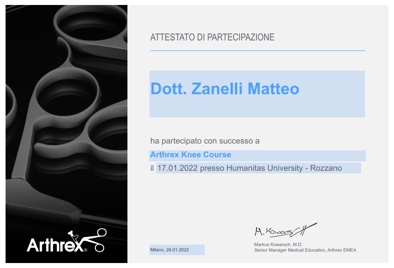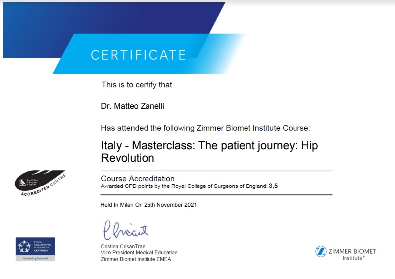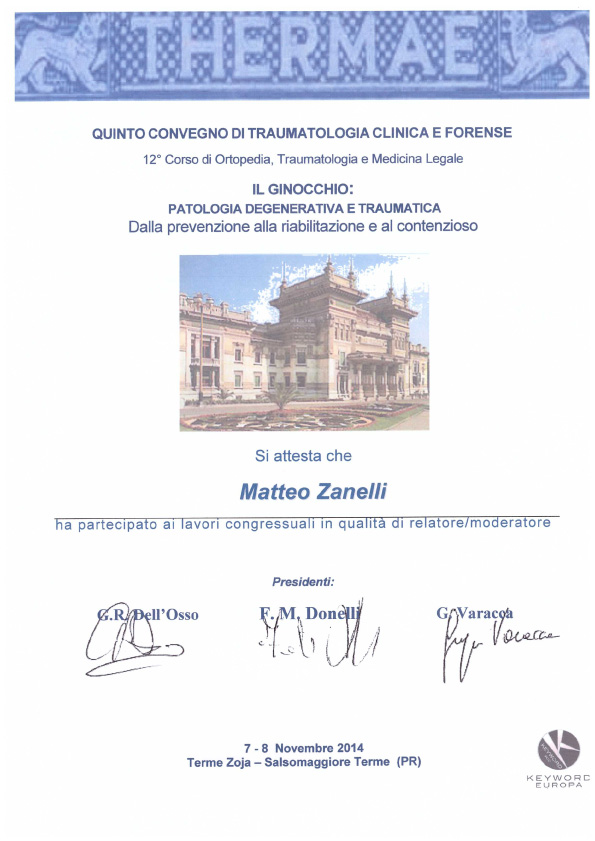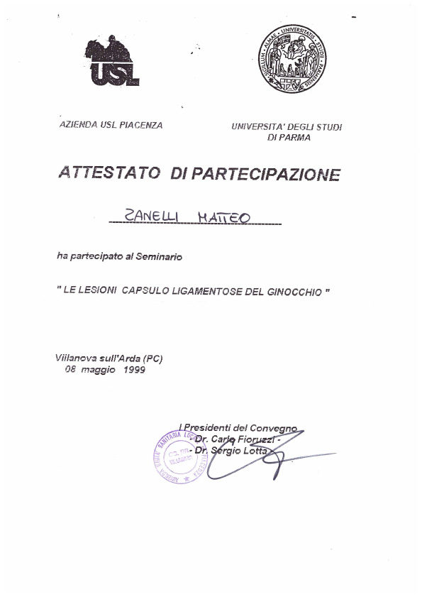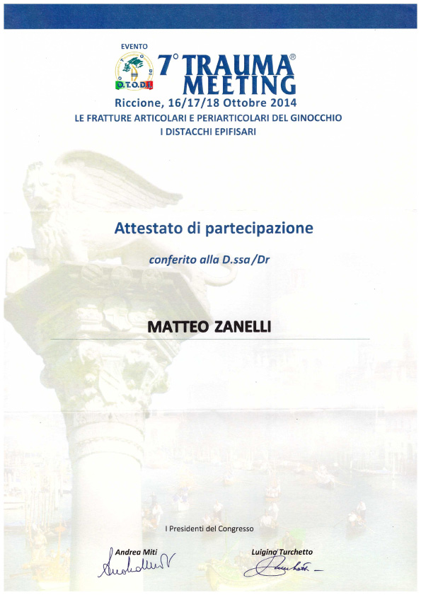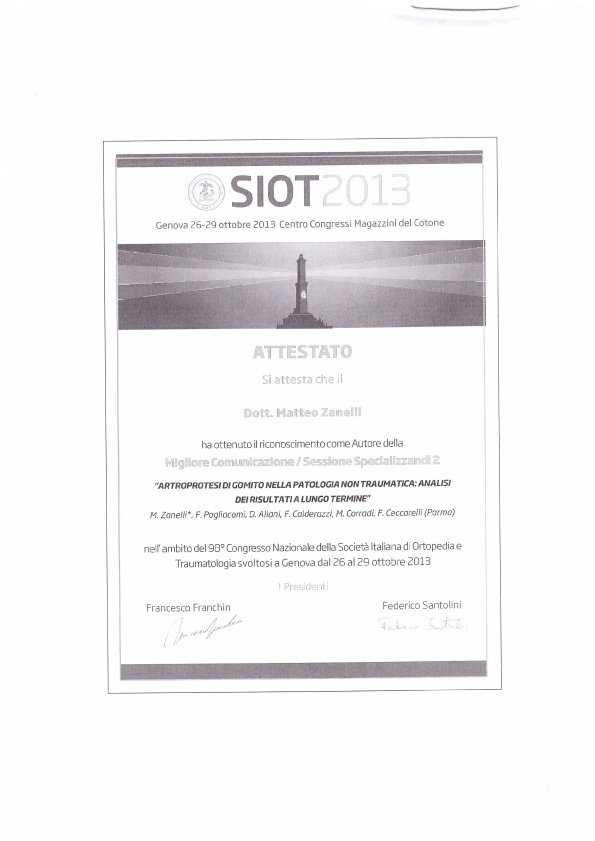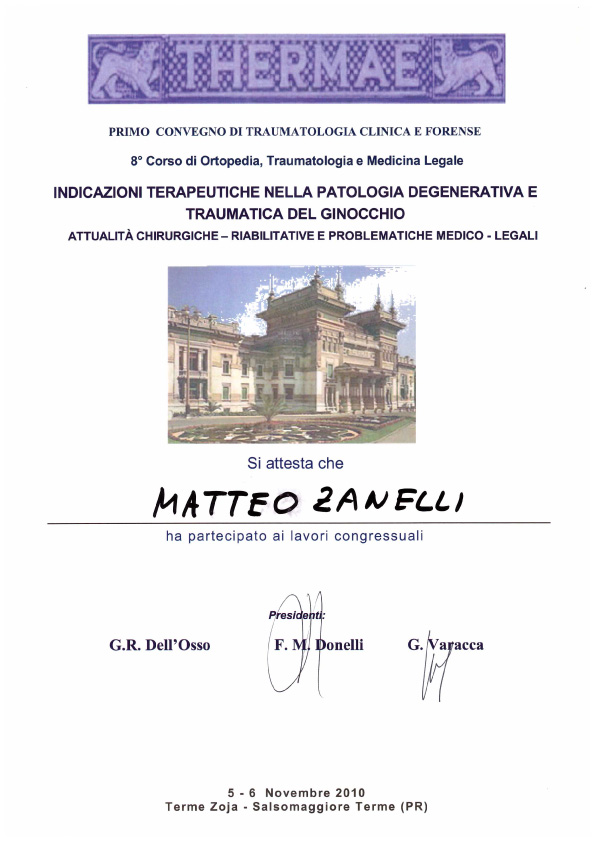 Sono socio SIOT (Società Italiana di Ortopedia e Traumatologia) e SIGASCOT (Società Italiana Ginocchio Artroscopia Sport Cartilagine Tecnologia ortopedica).