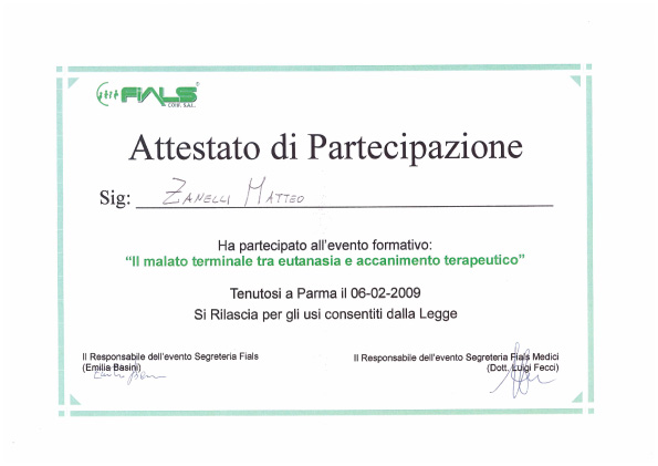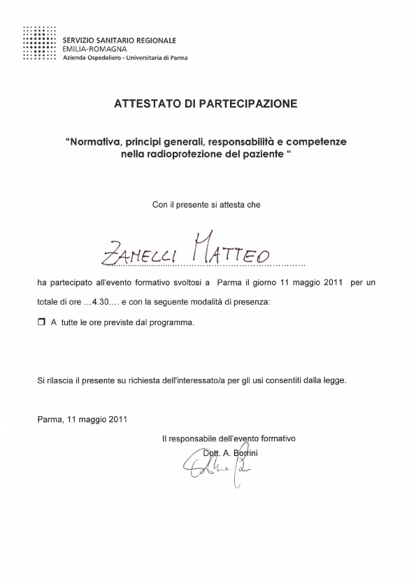 Di seguito riporto gli attestati a me riconosciuti.