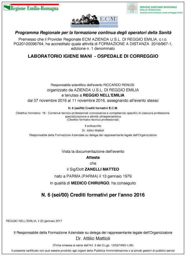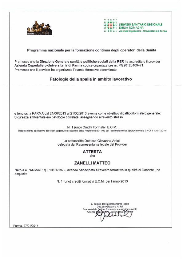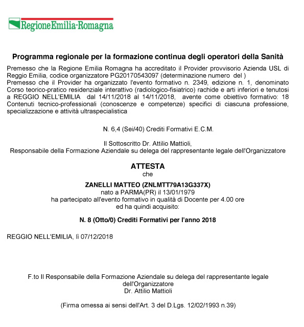 Dall’inizio del mio percorso nel 2001 ad oggi seguo sistematicamente corsi di formazione in Italia e all’estero, frequento con regolarità congressi anche in qualità di relatore. Sono autore di diversi articoli scientifici pubblicati su riviste nazionali ed internazionali (vedi sezione attestati).